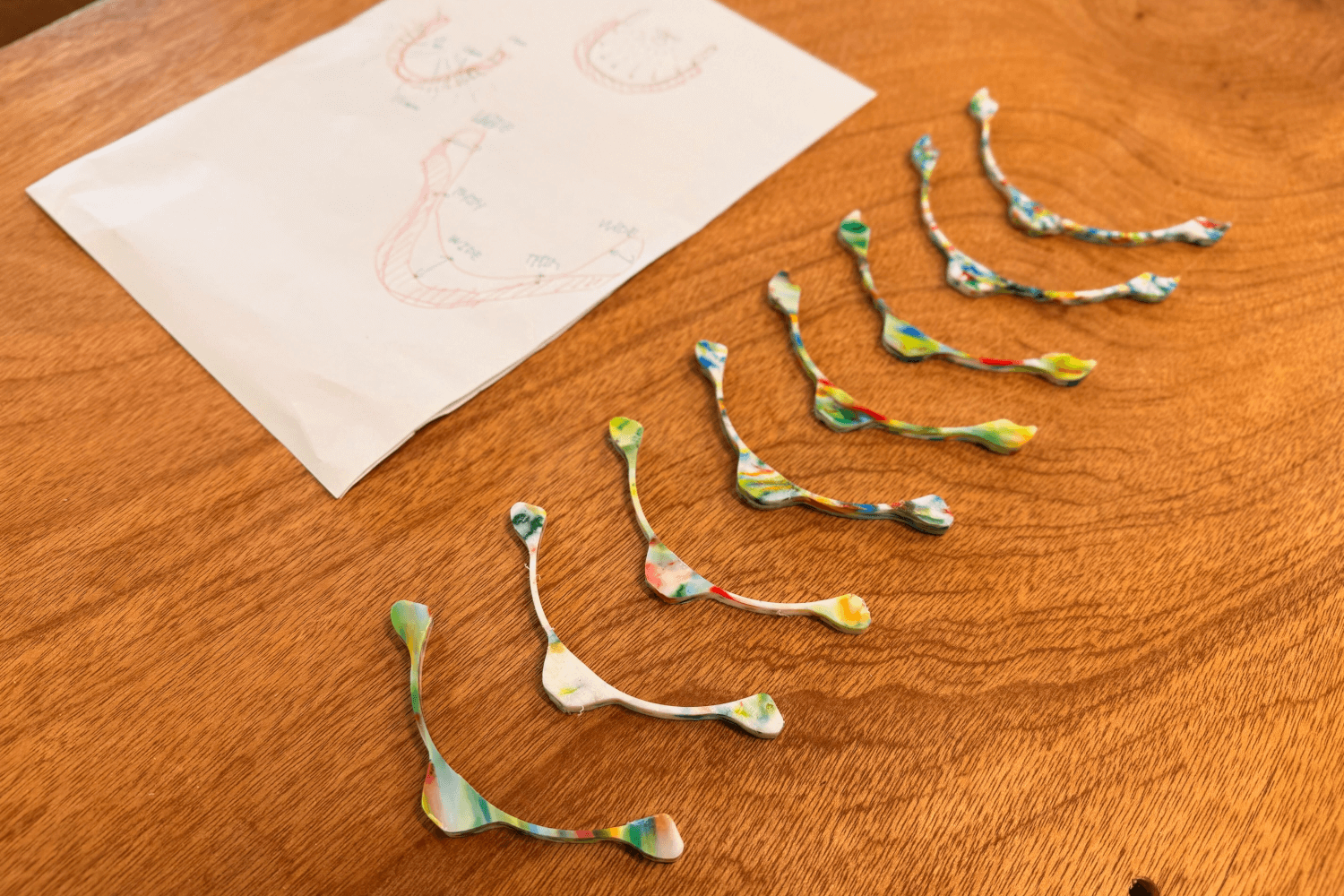 ペットボトルキャップのアップサイクルを手がけるブランド「スーパーメイト」さんの素材です。